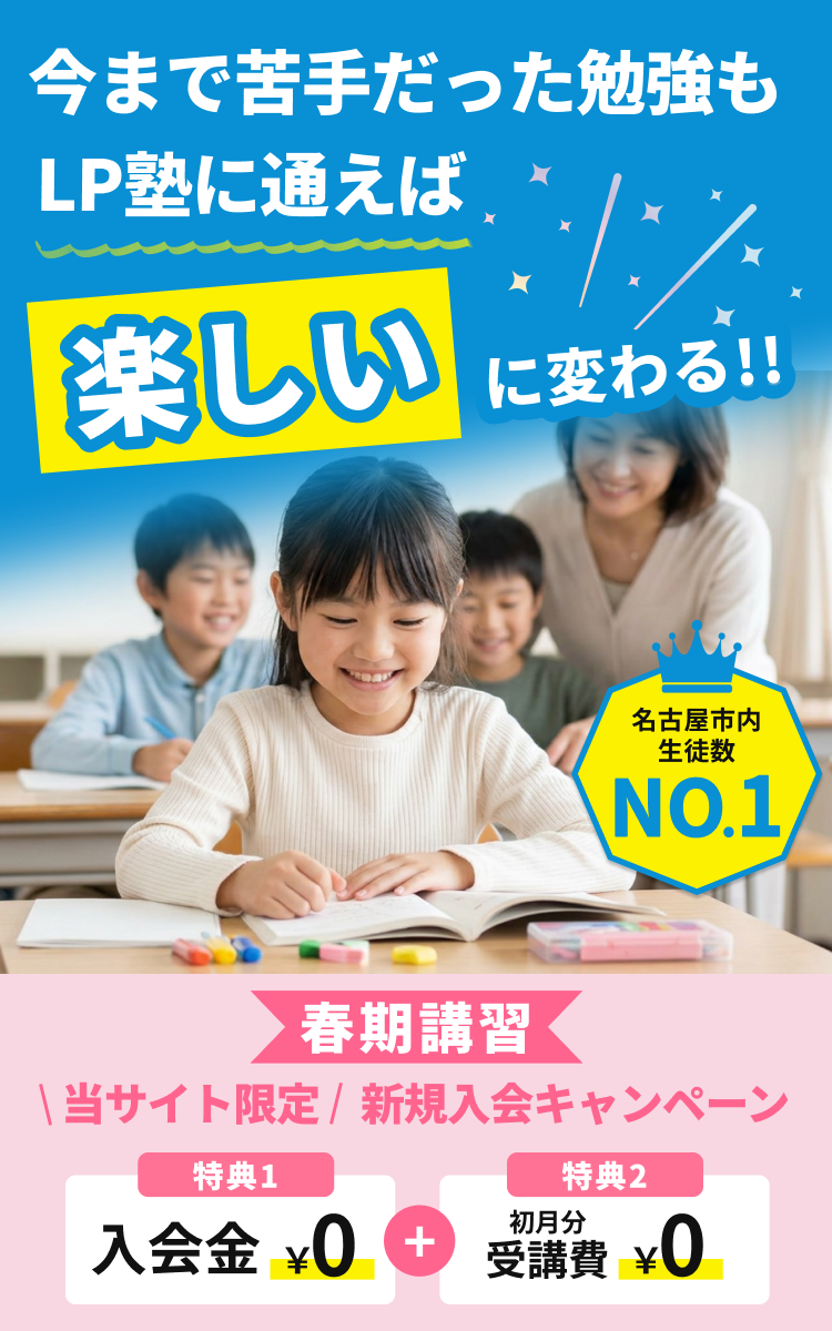 多くの塾が「授業をすること」で終わる中、本当に大切なのは“結果につながる仕組み”があるかどうか。無駄な宿題や非効率な学習では、成績は思うように伸びません。LP塾では、一人ひとりに合わせた学習設計とサポートで、「やれば伸びる」状態を実現。これまでの塾との違いを、ぜひ体感してください!